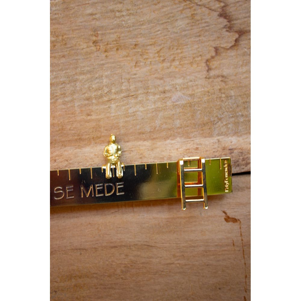 Escultura decorativa em formato de régua, feita de metal totalmente banhado a ouro, com um menininho na parte de cima. Na outra extremidade, na parte inferior, um pingentinho de coração vermelho e no meio da régua "amor que não se mede", que completa a genialidade dessa peça. Uma história de amor em forma de objeto decorativo, que vem prontinha para pendurar na sua parede ou presentear alguém especial.