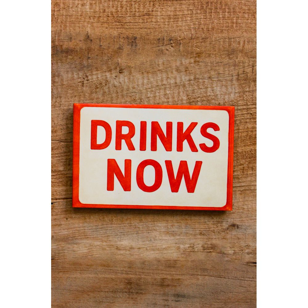 Azulejo decorativo com a frase (Drinks now), traduzida em bebidas agora, uma peça marcante e descontraída para compor espaços de descontrações, a frase se destaca no tom laranja vibrante, o que transforma a decoração com cor e boas vibrações, a peça decorativa que cria um ponto de destaque na parede, um convite para a diversão.