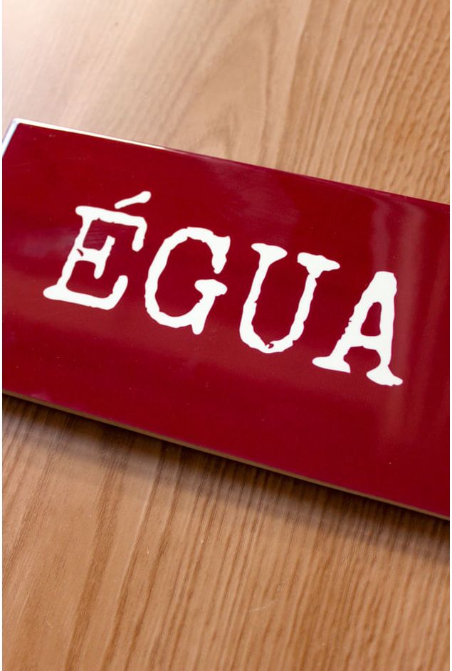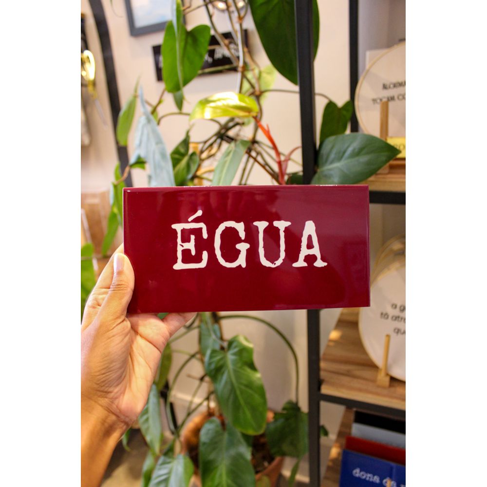 Azulejo decorativo com a palavra (Égua), uma peça que leva a descontração e expressão popular, daquelas que contêm sotaque, humor e identidade, uma peça decorativa marcante sobre o tom bordô para colorir a sua parede, usada para expressar surpresa, espanto, raiva ou admiração, o jeitinho brasileiro de transformar palavras em várias formas de expressões.