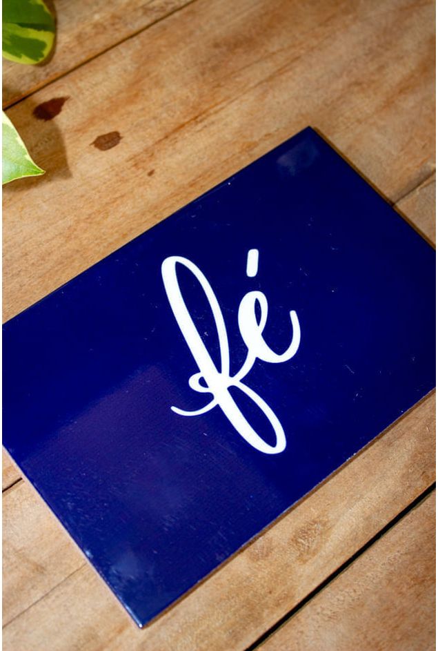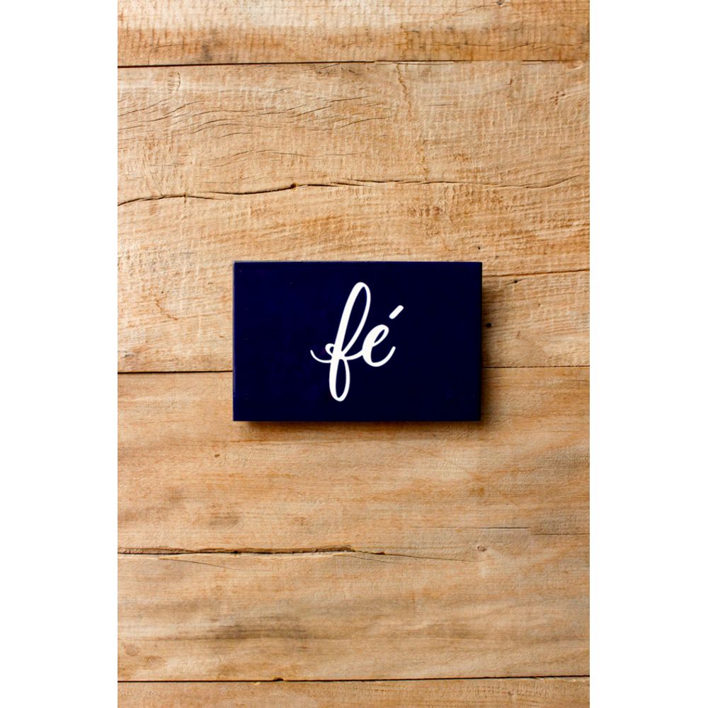 Esta peça traz a palavra (Fé) em destaque, em uma caligrafia elegante e fluida sobre fundo azul profundo. Um lembrete silencioso de força interior, confiança e esperança, para quem acredita, mesmo sem ver.