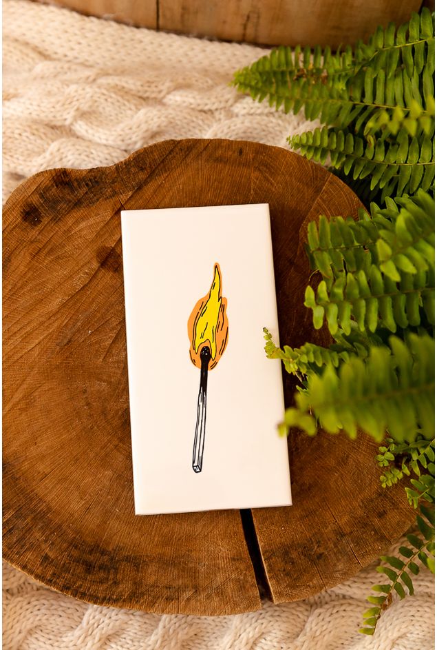 Azulejo decorativo branco com estampa de um fósforo aceso. Com ilustração delicadamente aplicada pelas mãos do artista Greghi Design, esse azulejo vai acender a sua decoração! Utilize-o com outros azulejos para uma combinação incrível.
