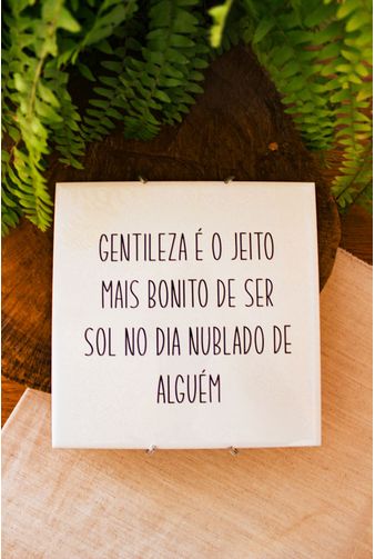 Azulejo decorativo com estampa exclusiva e inspirado nos pequenos detalhes do dia a dia, esse azulejo é uma peça que traz delicadeza e leveza para a sua parede, com uma frase para te inspirar todos os dias: "gentileza é o jeito mais bonito de ser sol no dia nublado de alguém".