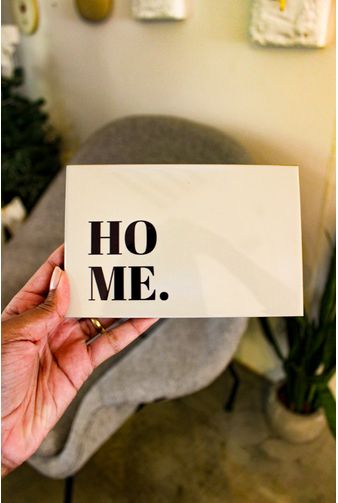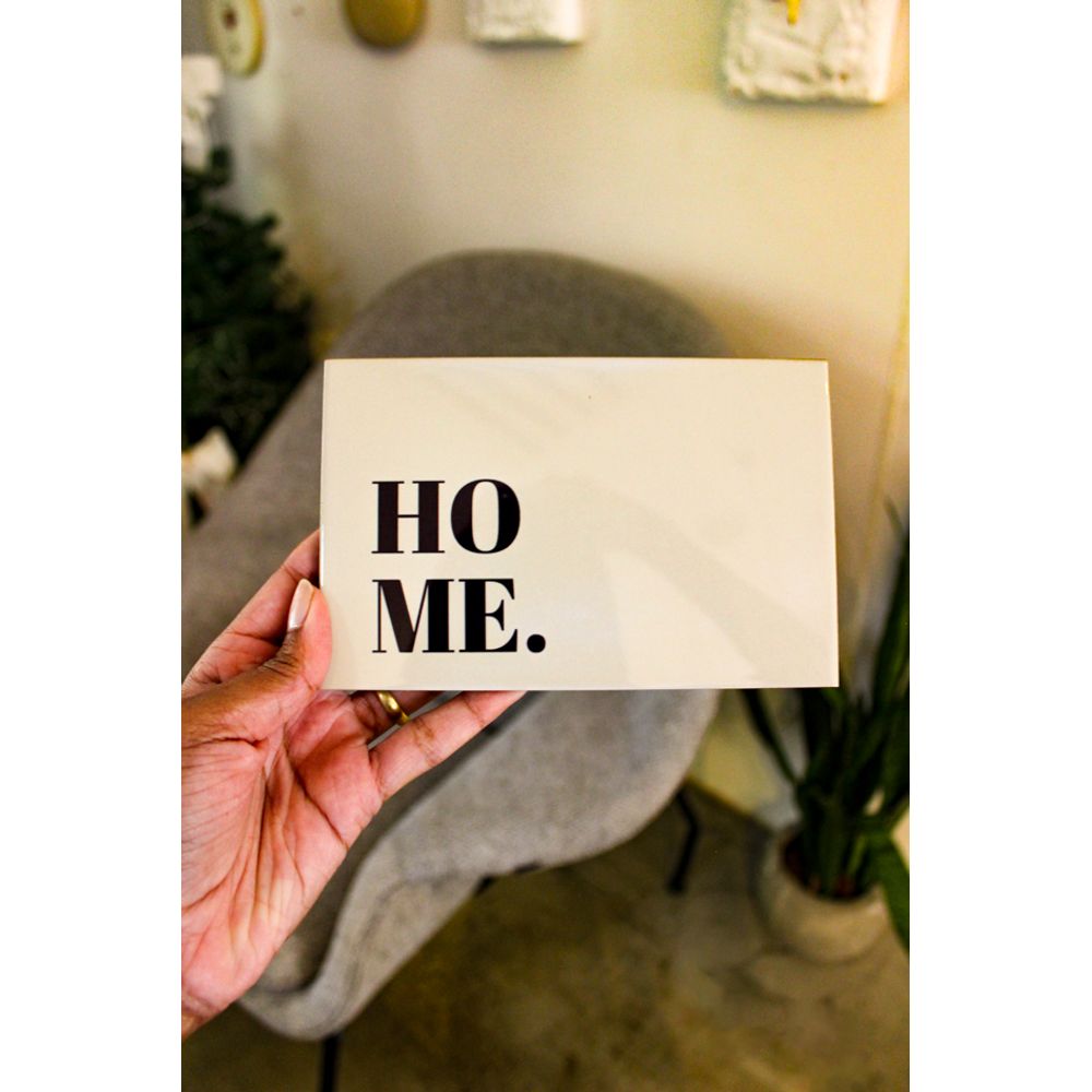 Azulejo decorativo com tipografia marcante em destaque em tom preto escrito (Home), que se destaca sobre o fundo em bege, uma peça minimalista repleta de estilo para espaços minimalistas e elegantes, decorando com charme e estilo.