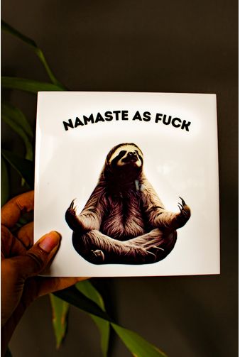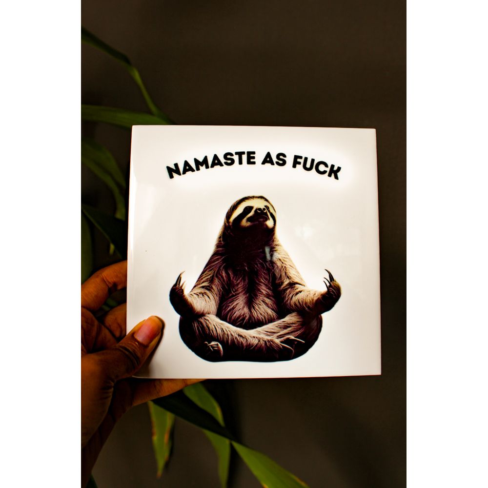 Essa peça traz o equilíbrio perfeito entre espiritualidade e bom humor. O bicho-preguiça em posição de lótus encena à calmaria, mas com aquele toque de sarcasmo que faz a gente rir e respirar fundo ao mesmo tempo. Ideal para quem leva a vida com leveza e um pouco de ironia. Com seu design clean com fundo claro e figura marcante faz com que o azulejo se destaque, com a frase (Namaste as fuck)