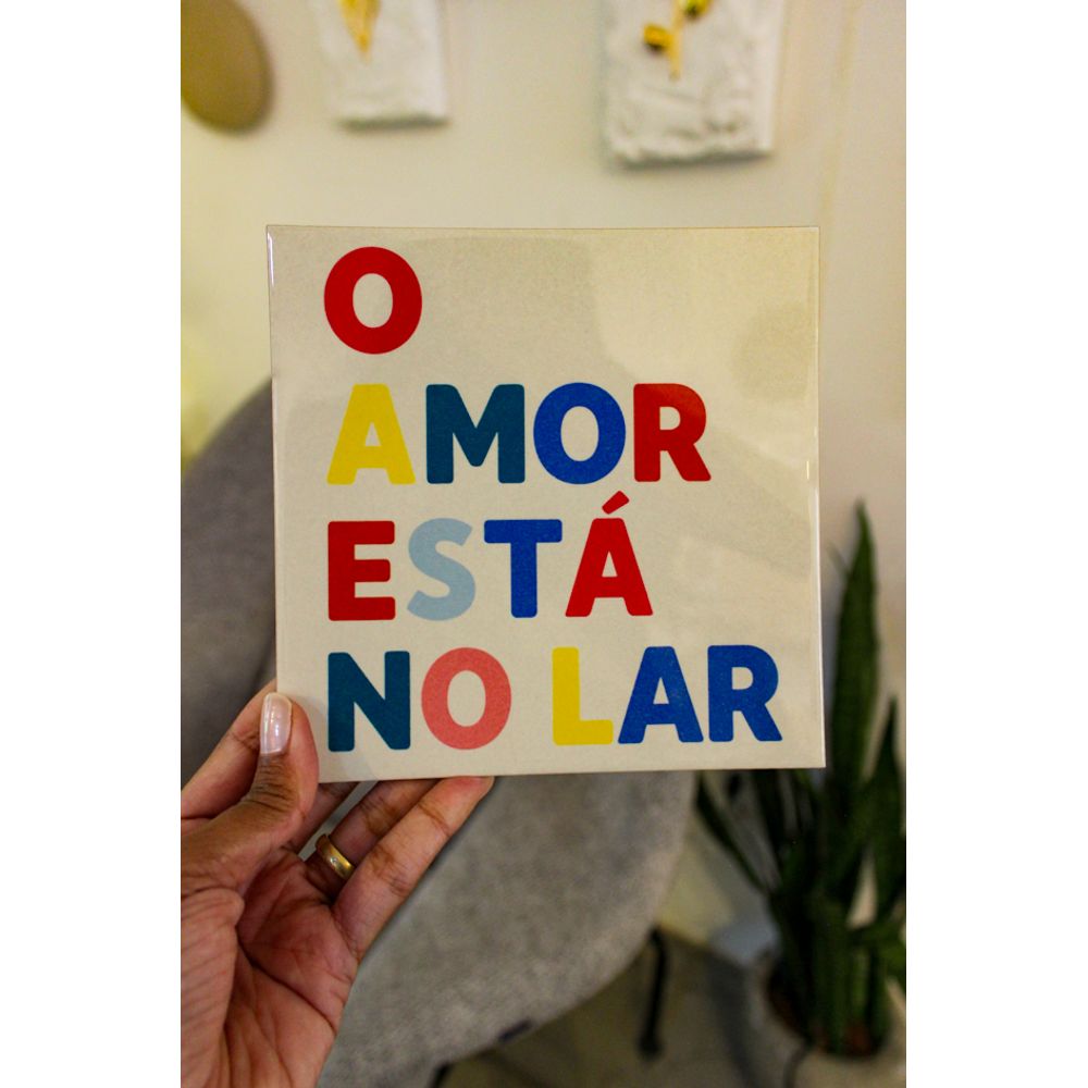 Colorido e acolhedor, esse azulejo traduz o que realmente importa: um lar onde o amor é presença constante. Com letras em tons vibrantes sobre fundo claro, a peça traz um toque moderno, afetivo e cheio de energia boa perfeita para aquecer qualquer cantinho da casa.