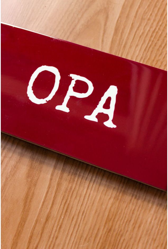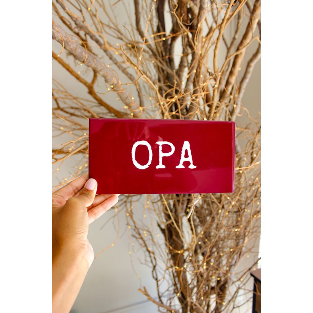 Azulejo decorativo com a palavra (Opa) em branco sobre fundo em tom bordô. Uma expressão muito usada em diversos cenários, o típico a palavra que escapa, o azulejo decorativo traz cor e identidade para a sua decoração, com uma saudação, uma surpresa, ou susto, a peça decorativa que leva um pouco de humor para a sua parede e identidade. Perfeito para ambientes descontraídos.