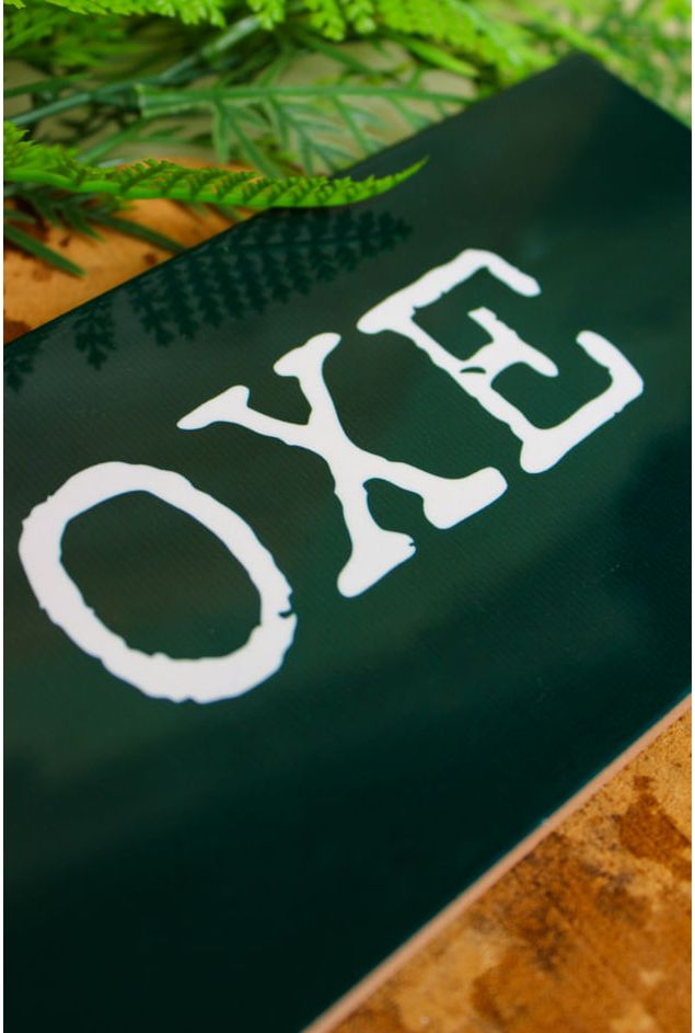 Azulejo decorativo com a palavra (Oxe) em letras em branco se destacando sobre fundo verde escuro, uma peça repleta de originalidade e carisma da expressão nordestina, levando descontração e autenticidade para qualquer ambiente. Perfeita para trazer brasilidade, bom humor e identidade cultural à decoração.