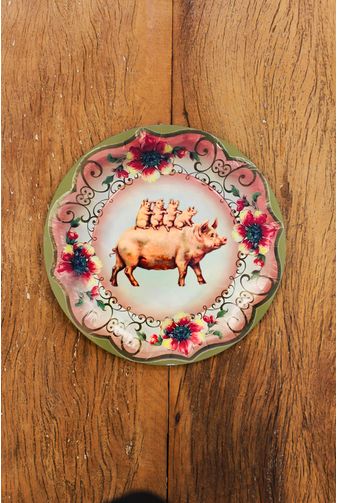 Azulejo decorativo em formato redondo, feita pelo querido artista Greghi, em um design retrô que lembra antigas porcelanas ornamentadas. Uma peça super legal para compor o decor da sua parede seja na cozinha, sala ou quarto!