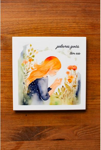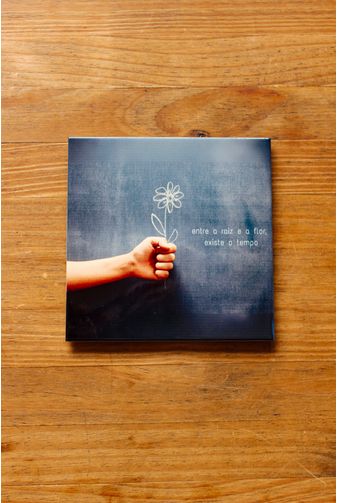 Azulejo decorativo na missão de trazer peças que façam sentido com a sua casa e a sua trajetória, essa peça traz uma flor saindo do solo, com a frase "entre a raiz e a flor, existe o tempo".