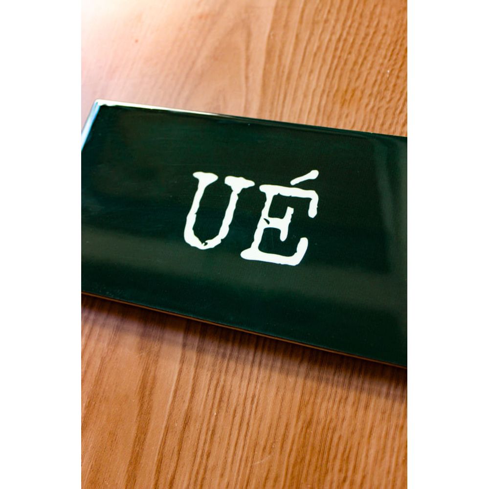 Azulejo decorativo com a palavra (Ué), com o tom verde escuro e letras em branco se destacando, uma peça divertida para pendurar na parede, que transmite a expressão dita no dia a dia, quem nunca deixou escapar um ué em momentos de dúvidas ou surpresas de algo, a fala brasileira que pode ser usada em várias formas de se expressar. Decore com um toque sutil de humor e cor.