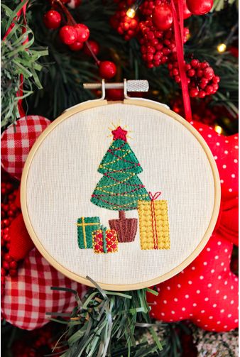 Bastidor decorativo comporto por um tecido de algodão, bordado com a imagem de um fusquinha branco carregado de presentes. A base do bastidor é um bambu, que resultou numa peça delicada e especial. Perfeito para presentear ou para decorar a sua árvore de natal.