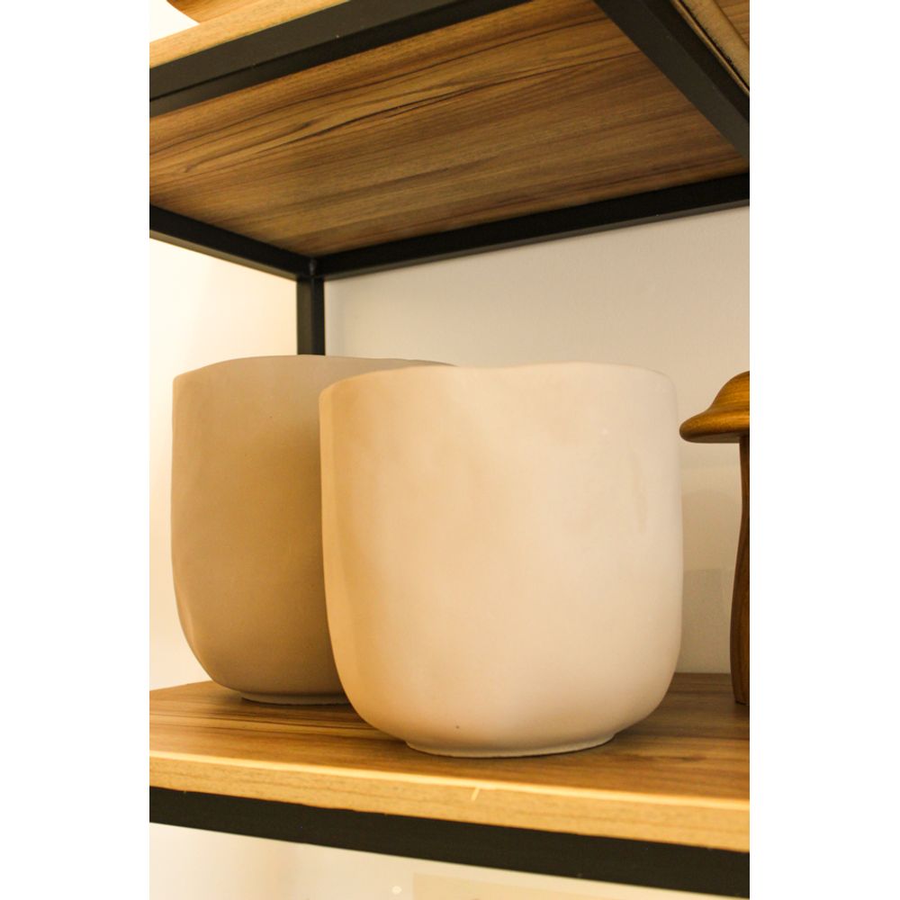 Cachepot orgânico feito em cimento no tamanho M, é uma peça moldada a mão, com design minimalista e natural, possui seu formato levemente irregular remetendo as formas orgânicas da natureza transmitindo leveza e toque contemporâneo para decorar ambientes.