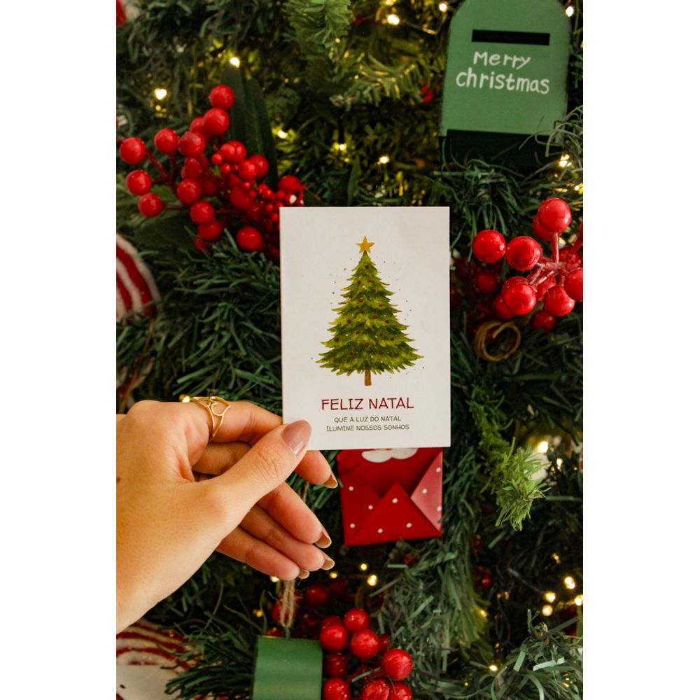 O Cartão de Agradecimento Árvore de Natal Mimo Galeria é um gesto simples, mas cheio de afeto, com uma estampa delicada de árvore de natal com traços que remetem a uma pintura e pequenos pontos em vermelho como enfeite, simbolizando a celebração de natal, acompanha as frases (Feliz natal) e (Que a luz do natal ilumine nossos sonhos). Transmitindo uma mensagem de esperança, no verso há um espaço que você pode escrever uma dedicatória, o que torna o cartão afetivo e único, surpreenda alguém especial.