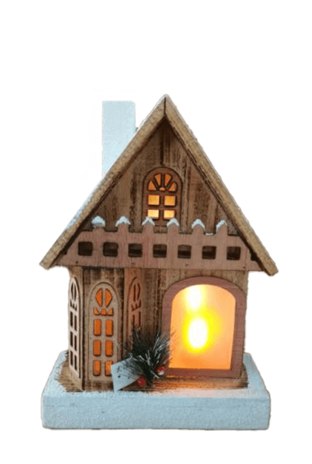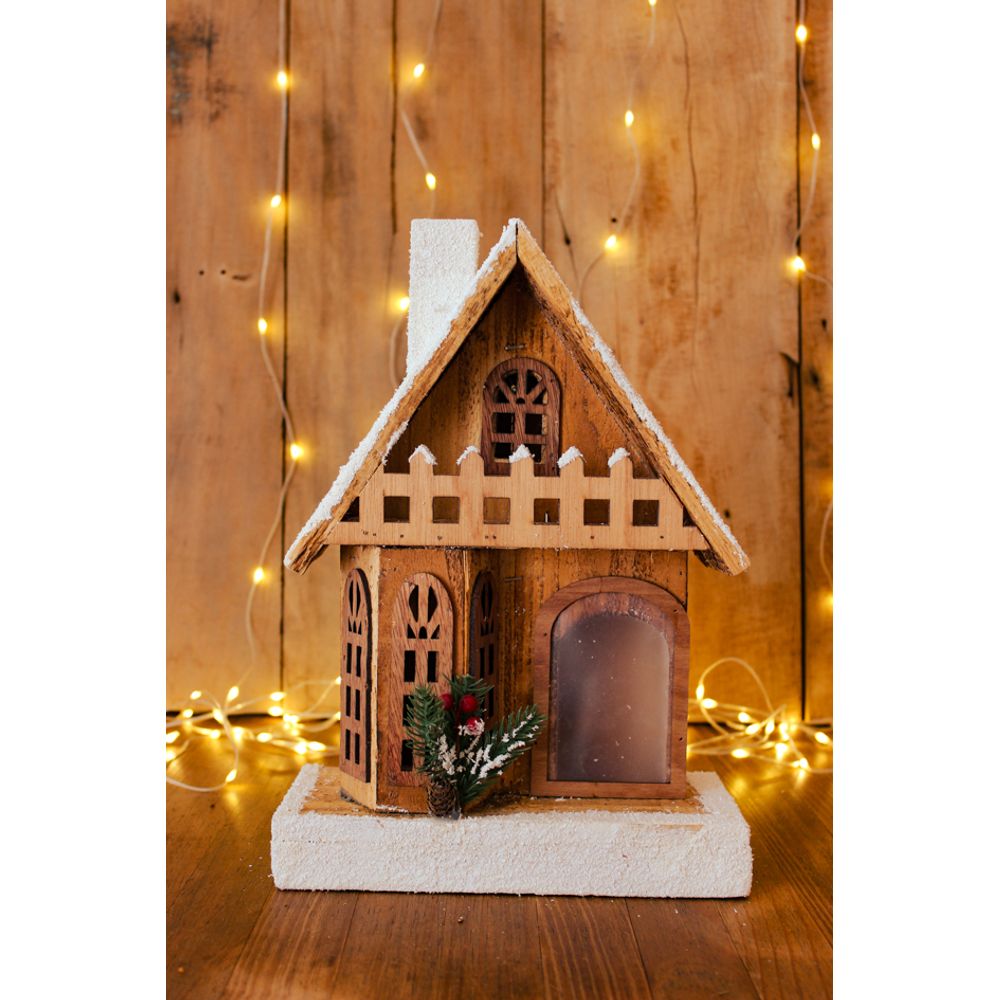 Casinha decorativa feita de madeira, com telhado e chaminé nevados e pinhas decorativas. Um adorno delicado e cheio de personalidade para encher a sua casa com a magia do natal. Pra deixar tudo ainda mais fofo e aconchegante, ele possuí pilhas que acendem uma luzinha dentro da casa.