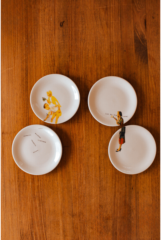 Conjunto de pratos decorativos feitos de porcelana com aplicações exclusivas do Greghi. Nessa nova coleção intitulada "memórias de um menino", Greghi abrange temas polêmicos como infância e direitos em conjunto com ilustrações em um estilo retrô, carascterístico do seu trabalho. Uma peça especial e cheia de significado para a sua parede.