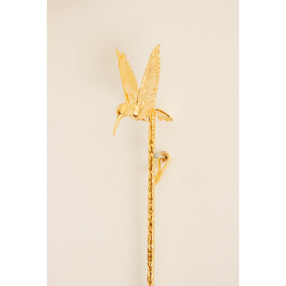 A colher de parede beija flor é feita em latão banhado a ouro, trazendo brilho e sofisticação à decoração, no topo uma delicada escultura de beija flor fixa se destaca pela riqueza dos detalhes em suas asas, adicionando poesia e leveza para a peça, a base apresenta uma sutil textura que revela um toque luxuoso, uma obra decorativa que une arte e elegância para transformar seu espaço em um ambiente cheio de personalidade e significado