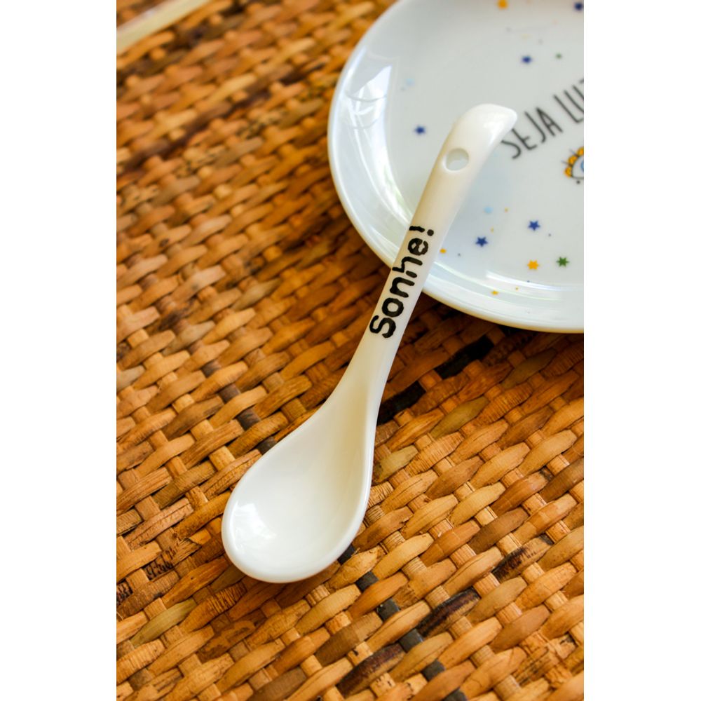 A colher de porcelana com a palavra (Sonhe), é uma peça de pequenos detalhes que transformam a rotina. Feita em porcelana com acabamento delicado e frase destacada inspira e ilumina o dia a dia, uma peça versátil que transmite delicadeza e poesia, a peça contém um furinho sendo possível utilizar pendurando em paredes para compor decorações ou utilizar no dia a dia, um delicado presente para pessoas que amam pequenos detalhes de cozinha.