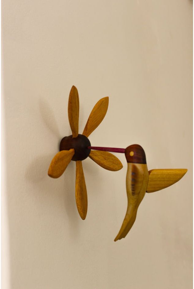 Combinação de parede Flor e Beija-Flor. Uma composição poética, que transforma a parede em um pequeno cenário de natureza. Uma peça artesanal esculpida a mão em madeira, unindo a leveza da flor ao movimento sutil do beija-flor, criando uma combinação repleta de delicadeza. Com formas orgânicas e acabamento que valoriza os tons naturais do material, essa combinação traz um toque artesanal e sofisticado para a decoração. Perfeita para ambientes que pedem naturalidade.