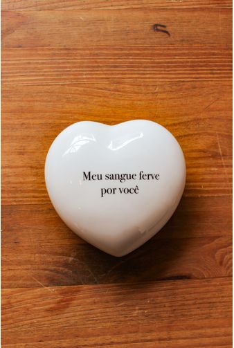 Coração decorativo feito de porcelana com decalque da frase "meu sangue ferve por você". Uma opção incrível para compor a decoração da sua parede em um estilo mais romântico, ou então presentear aquela pessoa especial! Também pode ser usado como peça de apoio.