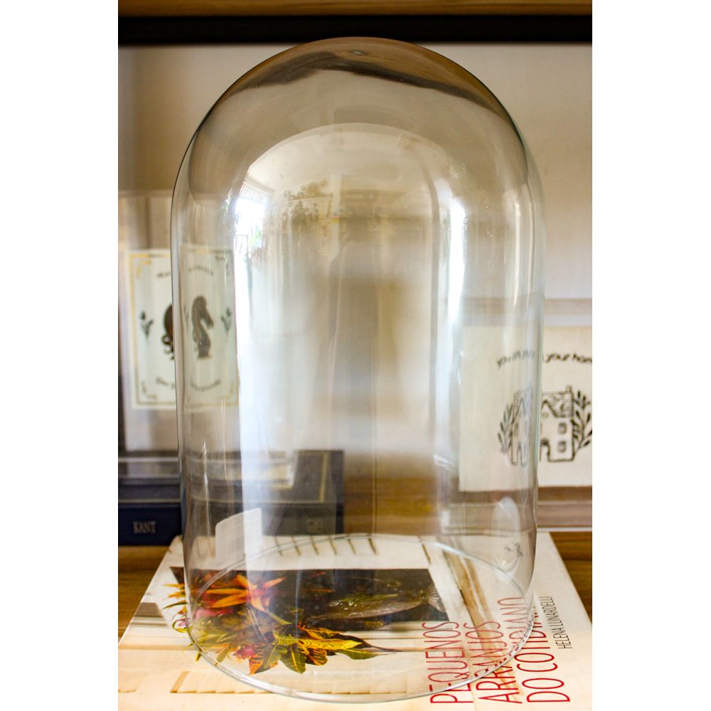 Cúpula decorativa em material vidro liso em seu tamanho médio, uma peça versátil e minimalista que transforma objetos simples em destaques, para decorar com cuidado sobre estantes ou prateleiras, criando um delicado acabamento protegendo o que está em seu interior. Seu material em vidro liso combina com diferentes estilos de decorações, transmitindo leveza para o ambiente.