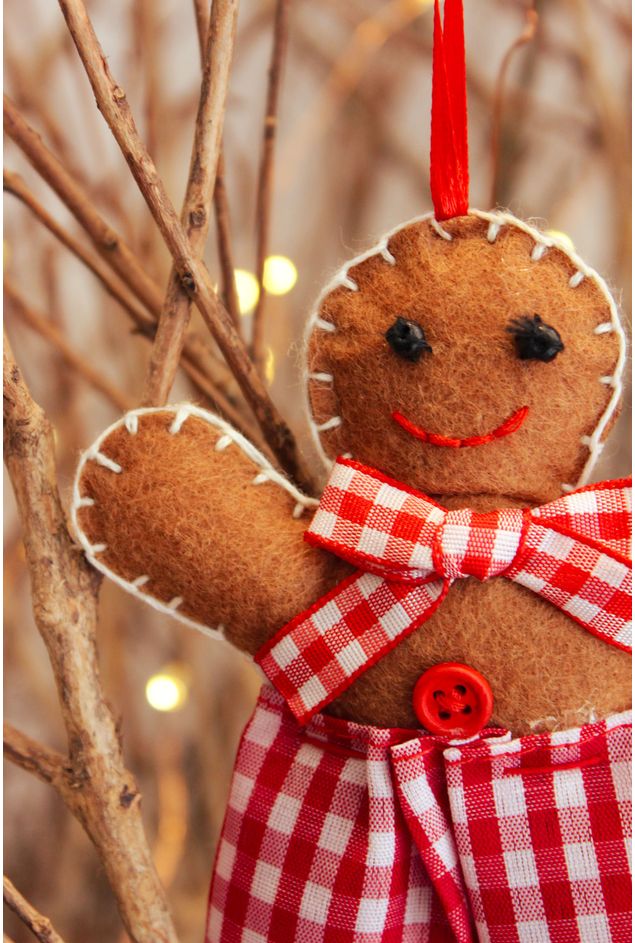 Pingente de natal em formato de gingerbread, os famosos biscoitos de gengibre, vestindo vestididinhos xadrez. Um detalhe incrível para compor a magia da sua árvore de natal e transformar o seu natal em uma época ainda mais única!