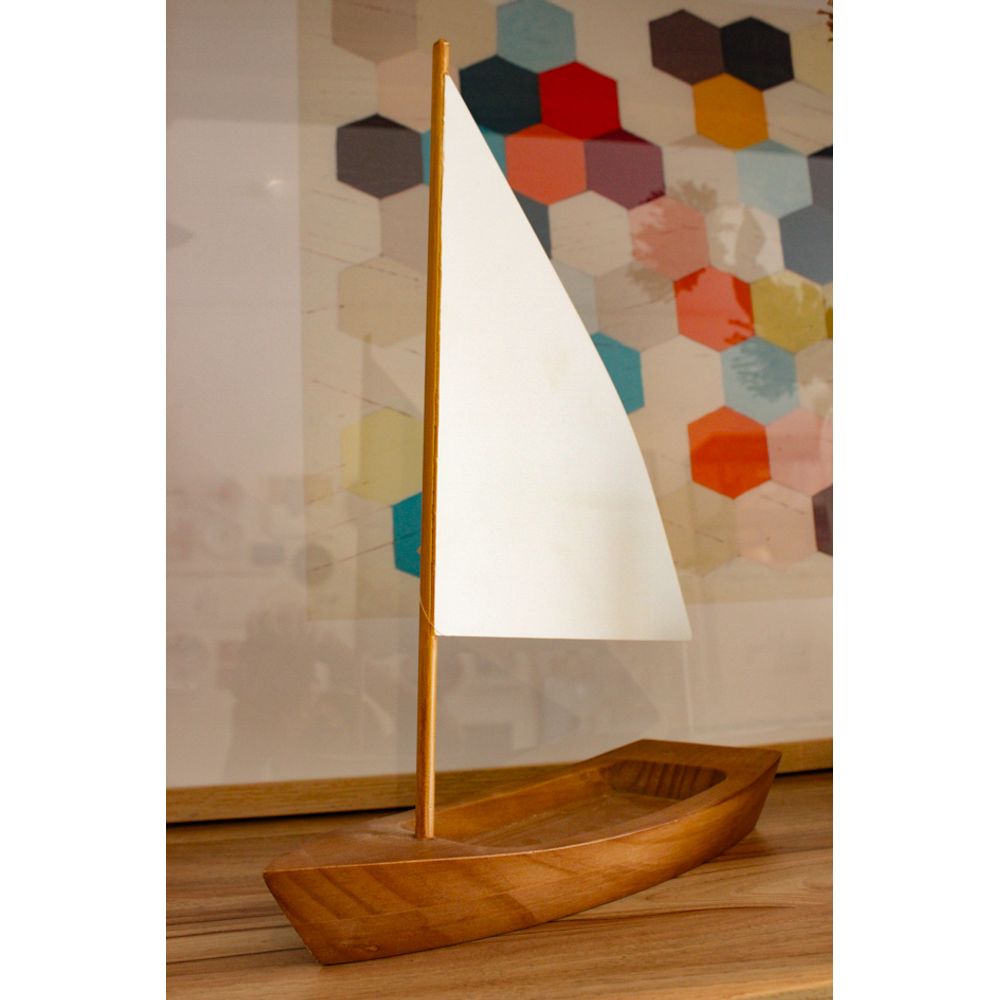Escultura decorativa barco em madeira tamanho G, uma peça artesanal e artística, com detalhe minimalista perfeita para decorar ambientes, com a sua vela pouco curva em tom neutro transmite a leveza e movimento que a peça evoca, um toque rústico para a sua decoração.