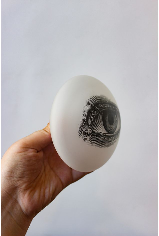 Esfera decorativa feita de vidro fosco leitoso, com aplicações exclusivas do Greghi. Peça super irreverente e atemporal para deixar o seu ambiente com um estilo único! Com design de um olho detalhadamente desenhado, essa peça é para quem gosta do diferente, do único. Podendo ser usada tanto na parede, quanto como objeto de apoio em uma mesa de centro, por exemplo.