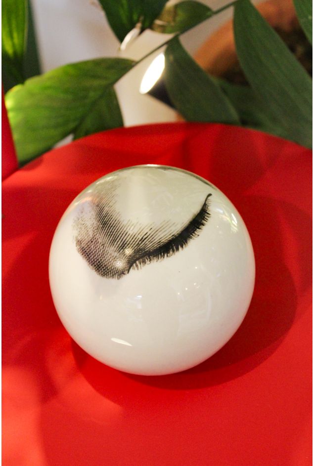 Esfera decorativa feita de porcelana, com aplicações exclusivas do Greghi. Peça super irreverente e atemporal para deixar o seu ambiente com um estilo único! Com estampa de um olho fechado detalhadamente desenhado, essa peça é para quem gosta do diferente, do único. Podendo ser usada tanto na parede, quanto como objeto de apoio em uma mesa de centro, por exemplo.