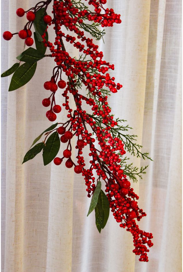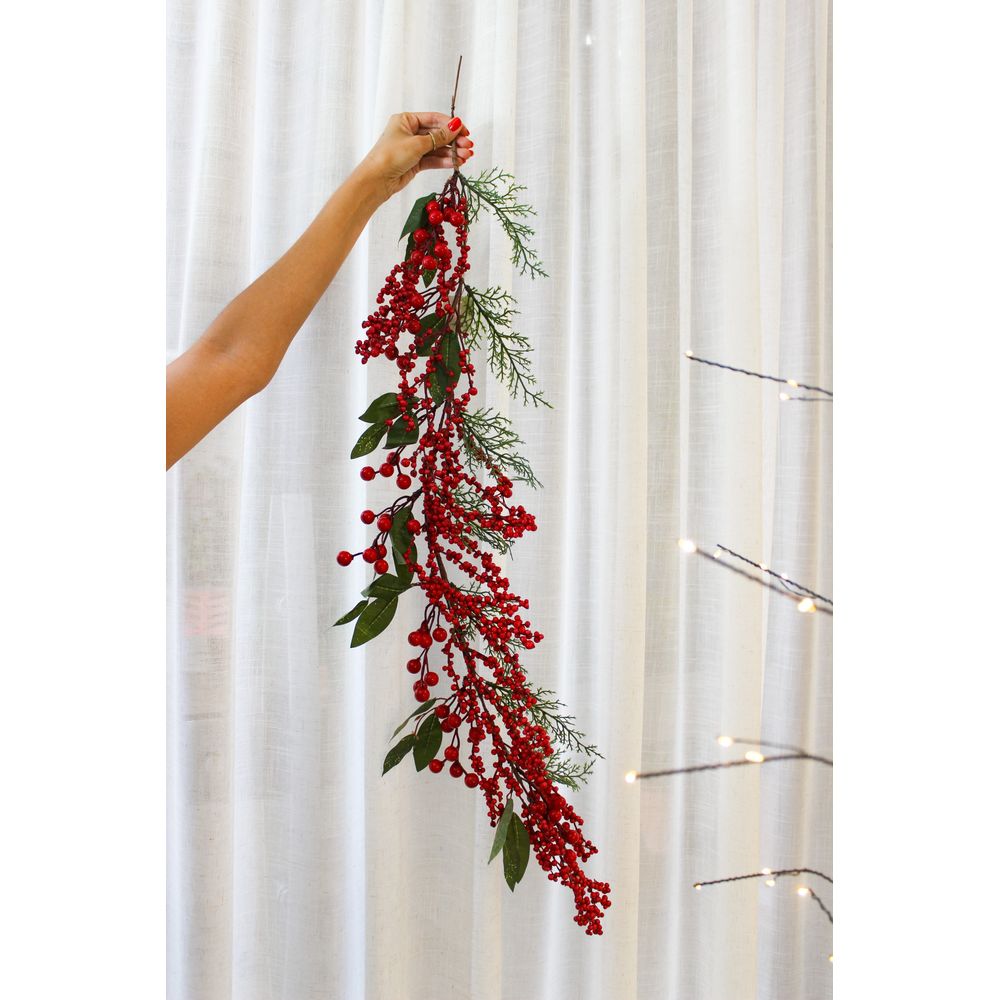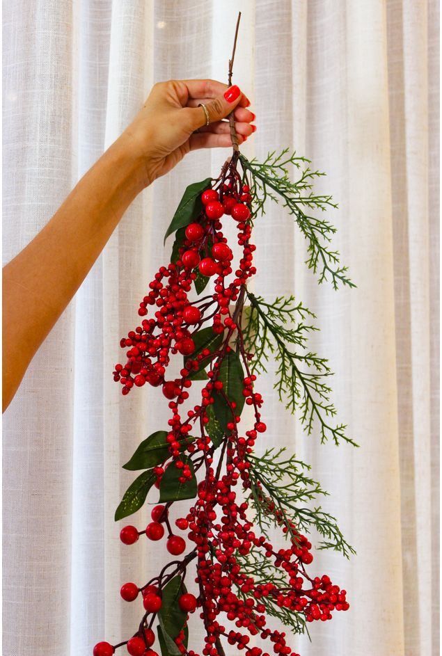 Festão decorativo com 1 metro, comporto por berries e azevinhos. Um enfeite super lindo e delicado para compor a sua decoração de natal seja preenchendo a sua árvore ou decorando o batente da sua porta, por exemplo.
