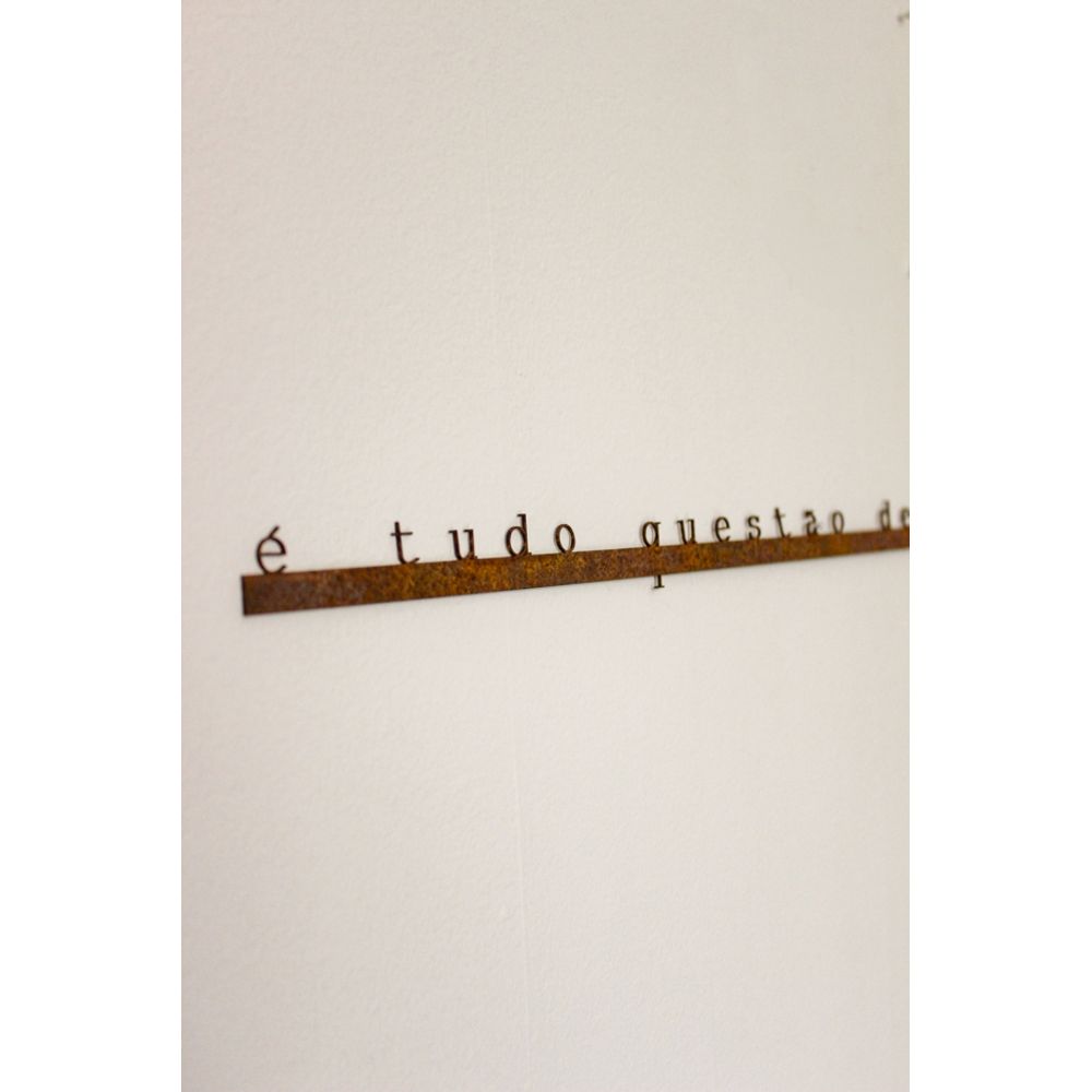 Frase em ferro com a frase poética (É Tudo Questão De Química), uma peça decorativa de parede que une leveza e personalidade, com acabamento em tom cobreado natural do metal garimpado, como marcas do tempo preservadas para manter o charme da peça, perfeito para quem aprecia decoração rustica, para pendurar na parede.