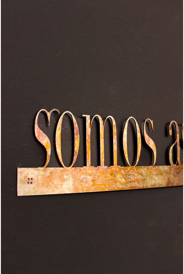 A frase em ferro (Somos as nossas escolhas) é uma peça artística e artesanal em ferro com uma poética mensagem que carrega presença e propósito, obra com acabamento em tom cobreado natural do metal garimpado, como marcas do tempo preservadas para manter o charme da peça, perfeito para quem ama decorações rústicas e autenticas, para pendurar em espaços de liberdade e abrigo.