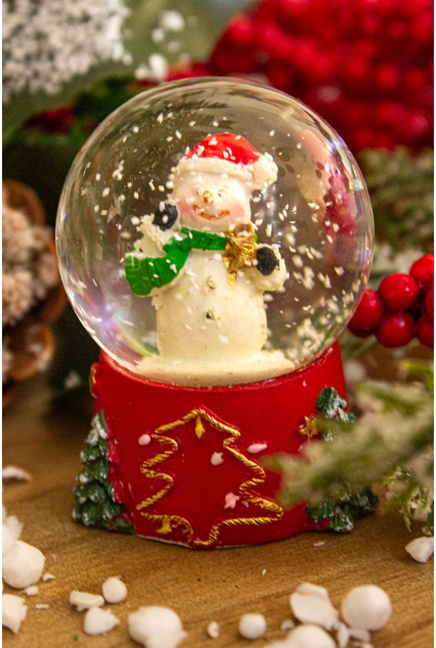 O mais queridinho de Natal, o globo de boneco de neve é a peça-chave para a sua decoração, super delicado, ao agitá-lo a neve ao redor caem suavemente sobre o boneco de neve super charmoso com seu cachecol verde e gorro vermelho, transmitindo a alegria natalina.