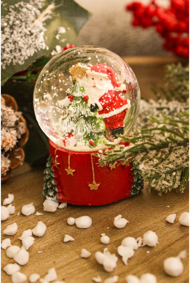 Perfeito para compor decorações natalinas, o globo de neve papai Noel presente, revela a energia natalina, seu detalhe está na neve que caem suavemente sobre o papai Noel ao agitar a peça. Super delicado e rico em detalhes para transformar decorações.
