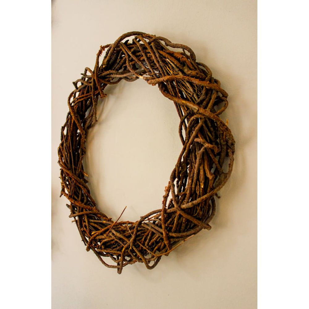 A guirlanda decorativa traz o charme rústico natalino com seu material natural trançado manualmente, seu tom e textura marcante unem perfeitamente o artístico com artesanal, transformando a essência da decoração, combinando com todos os ambientes, um toque minimalista e elegante, ideal para pendurar em portas de entradas e paredes como boas-vindas, captando a energia que a estação de natal transmite.