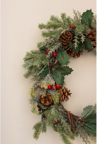 Encante a sua decoração com a guirlanda cheia de charme com pinhas rústicas e delicadas berries vermelhas, um toque de cor e energia que o natal evoca. A porta de entrada para a magia natalina.