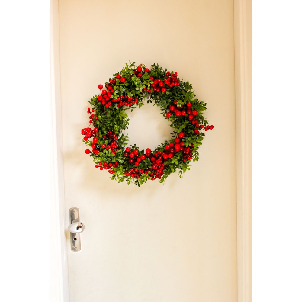 Uma peça clássica de natal que não pode faltar em sua decoração, a guirlanda natalina galhos e berries tem por seu destaque os pequenos berries em vermelho vibrante super delicados e encantadores, juntamente com a folhagem verde que entra em harmonia com o tom e destaca a guirlanda, um símbolo de alegria e espírito natalino trazendo um toque festivo para decorar portas ou paredes, uma peça encantadora que transforma qualquer espaço com muito charme.