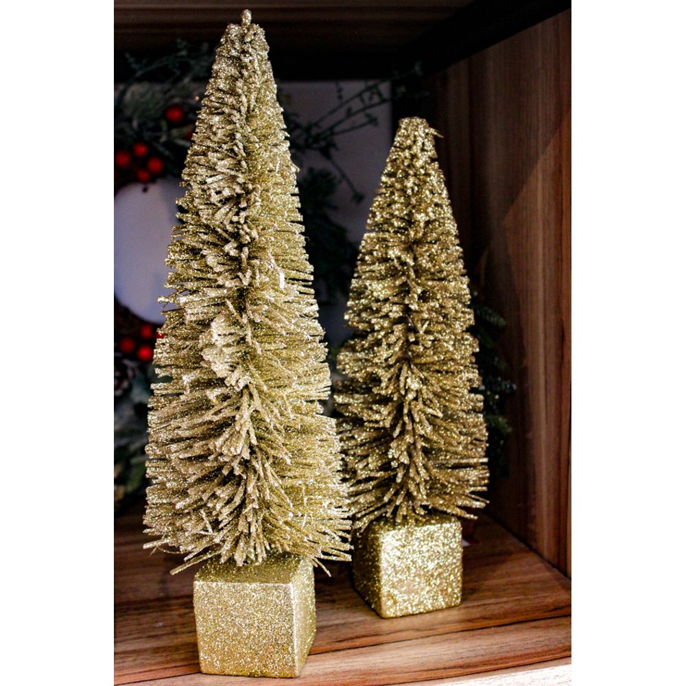 O kit de mini pinheiros decorativos são peças cheias de brilho, o que transformam decorações com o destaque da celebração natalina, uma peça clássica e versátil tanto para compor mesas festivas quanto para compor decorações natalinas, o seu tom ouro em dourado tornam a peça brilhante e chamativa, o ponto de luz e alegria que o natal nos revela.