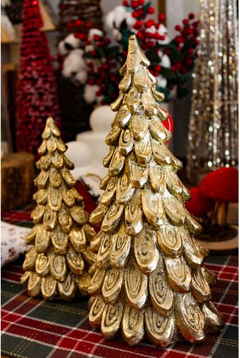 O kit pinheirinho resina dourado são esculturas decorativas requintadas em formato de árvore natalina, seu tom dourado entrega muito glamour e brilho para a sua decoração, seu acabamento contém textura com riscos e detalhes sinuosos como gotas que transformam a peça em um verdadeiro encanto artístico, ideal para compor mesas decorativas ou cantinho de natal, sua presença marcante e design sofisticado decoram com destaque.