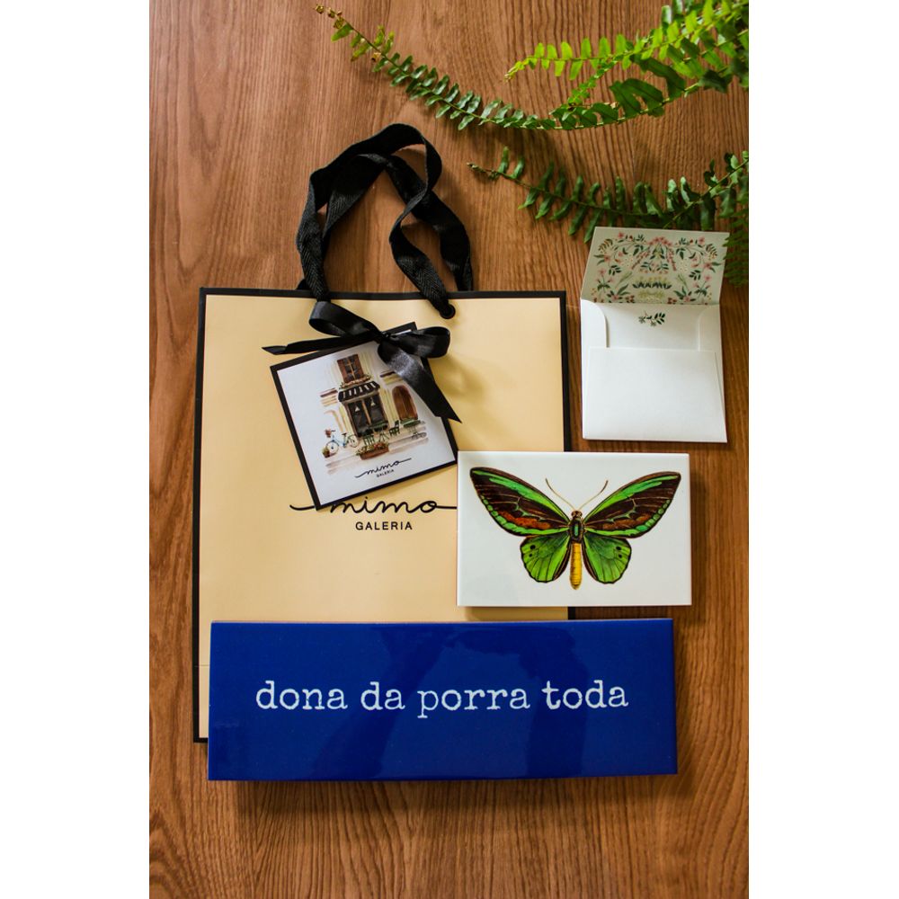 Kit para presente que transmite atitude e beleza, para pessoas fortes e autenticas, composta pelo azulejo decorativo com a figura de uma bela borboleta verde, símbolo de transformação e esperança, enquanto o azulejo decorativo em tom azul marcante revela a frase (Dona da porra toda), uma mensagem de força para presentear aquela pessoa que carrega presença por onde passa. Um mimo criativo para celebrar aquelas que inspiram.