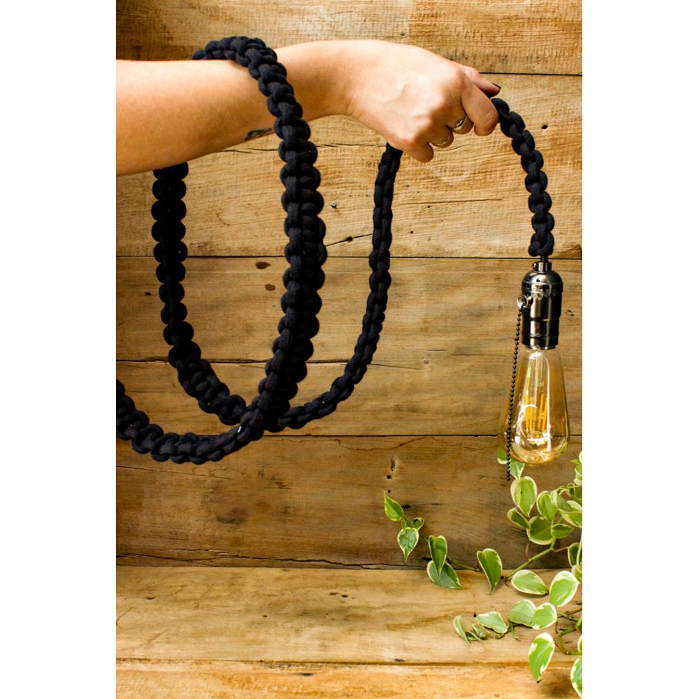 Cordão de fio de algodão todo trabalhado artesanalmente com soquete vintage de metal com correntinha liga/desliga.