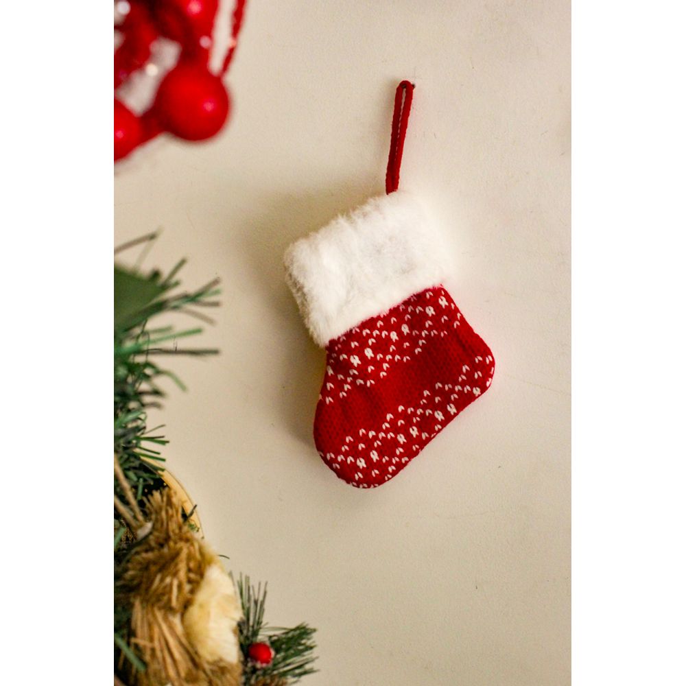 Meia decorativa de natal na cor vermelha, feita em tecido de lã com detalhes em branco, a meia tradicional natalina é feita para pendurar em paredes, escadas ou lareiras, uma peça que traz o afeto e memórias natalinas, compondo decorações com alegria e diversão. Símbolo de tradição para que o papai noel deixe presentes para as crianças e atrair prosperidade.