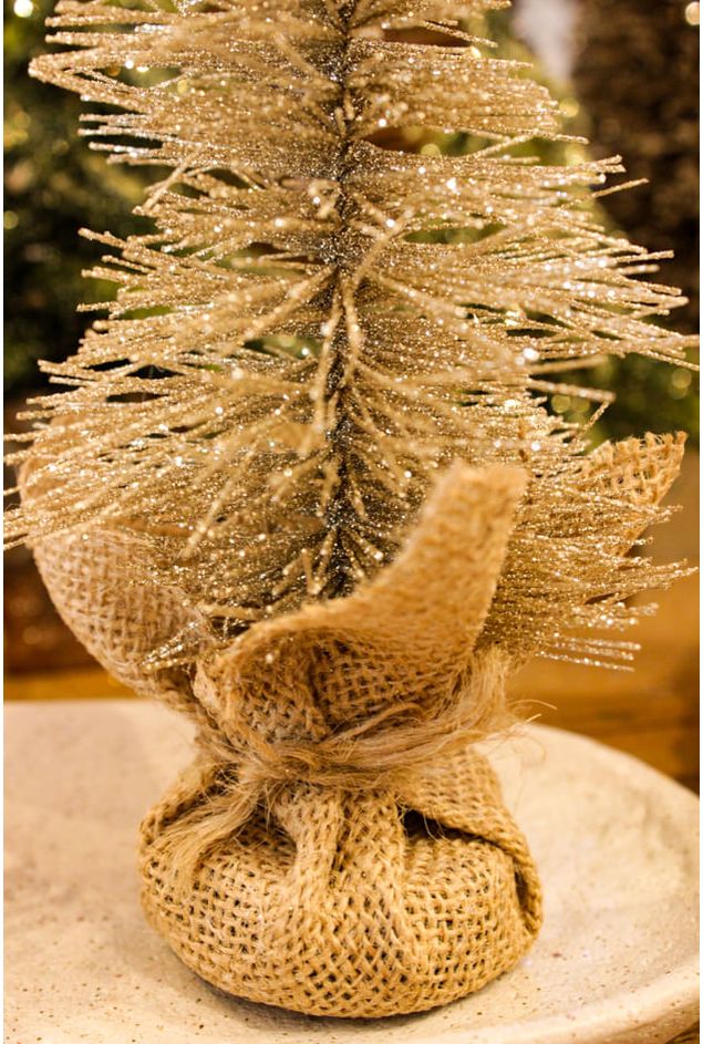 A mini árvore de natal com juta, é uma peça rústica e delicada, com detalhes em brilho dourado e prata e base em tecido juta, perfeita para decorar um cantinho especial natalino, a sua composição natalina transmite delicadeza e estilo.