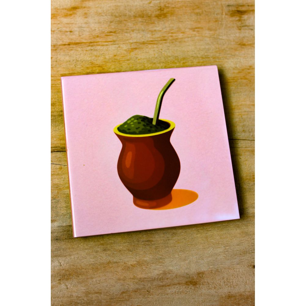 Mini azulejo decorativo com ilustrando um chimarrão, símbolo da cultura gaúcha e indígena, uma bebida que representa conexão, conversa e momentos compartilhados, arte cheia de cores para decorar com história e significado, e o mimo perfeito para presentear.