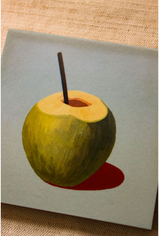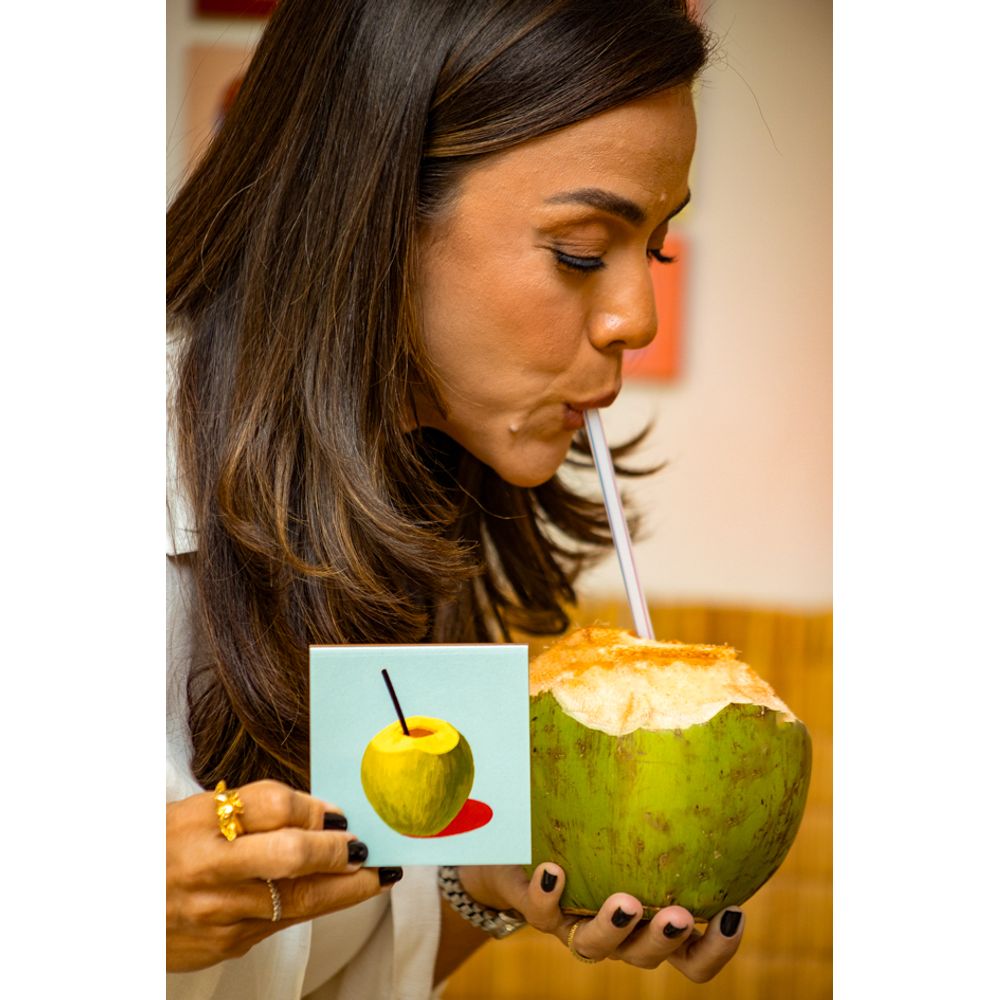 Mini azulejo decorativo com a ilustração de um ícone tropical muito amado, símbolo de verão para os brasileiros, o coco fresco cortado na hora é uma memória marcante, suas cores transmitem frescor e leveza, a peça perfeita para decorar com brasilidade e estilo, combinando com outras peças da coleção.