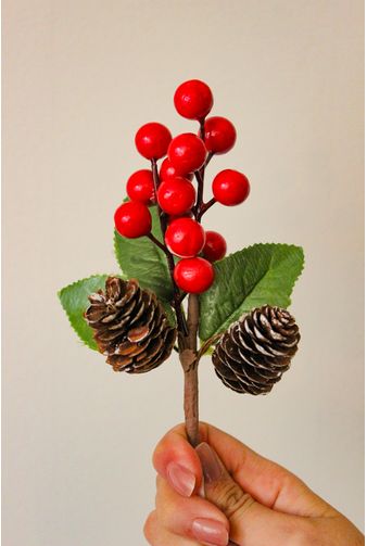 Mini pick pinhas é o detalhe que encanta para a sua decoração, uma peça versátil que pode ser utiliza em arranjos, árvores natalinas, composições de mesa posta e muito mais, seu design é composto por um ramo com delicadas berries vermelhas, pinhas naturais e folhagem verde artificial, perfeita para ativar a essência de natal em momentos festivos ou decorações de forma delicada e elegante, uma obra artesanal repleta de charme transformando qualquer decoração criando o destaque a peça transmite.