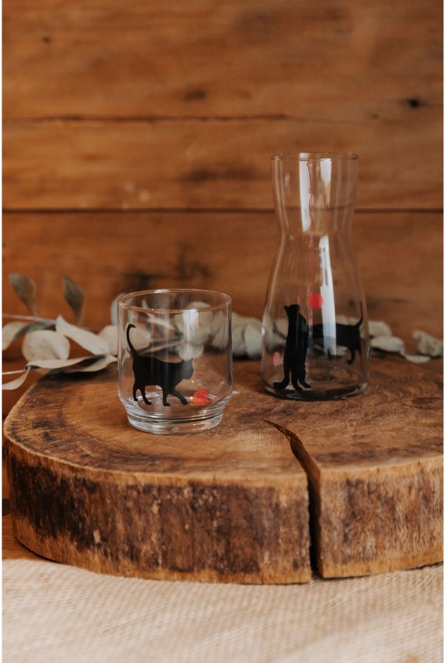 Moringa em vidro, com tampa que também serve como copo, para armazenar sua água. A peça ainda recebe aplicação das artes do Greghi Design, que deixa tudo ainda mais especial. Que tal essa moringa pra decorar seu ambiente de trabalho ou seu quarto? Pense nela também como opção para dar um presente bem especial.