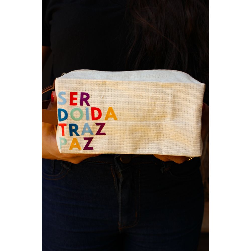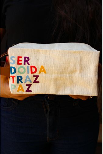 Uma necessaire completamente divertida, que chega para garantir risos e leveza com a frase (Ser doida traz paz) em letras coloridas, o que soma no destaque da peça, feita em tecido resistente com acabamento em courinho na alça, entregando muita sofisticação, o mimo vai pronto para presentear embalada em um saquinho com cores diversas, sendo: rosa, amarelo, verde e azul, com o envio sortido, um presente cheio de carinho e bom humor, super prático para o dia a dia. Surpreenda pessoas especiais.