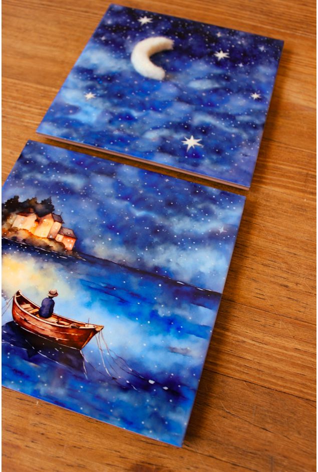Painel de azulejos para aqueles que não se contentam com o chão e deixam a cabeça sempre no céu. Para os sonhadores. Para os que se atrevem a olhar por além das estrelas. Perfeito para trazer a personalidade sonhadora para a sua parede.