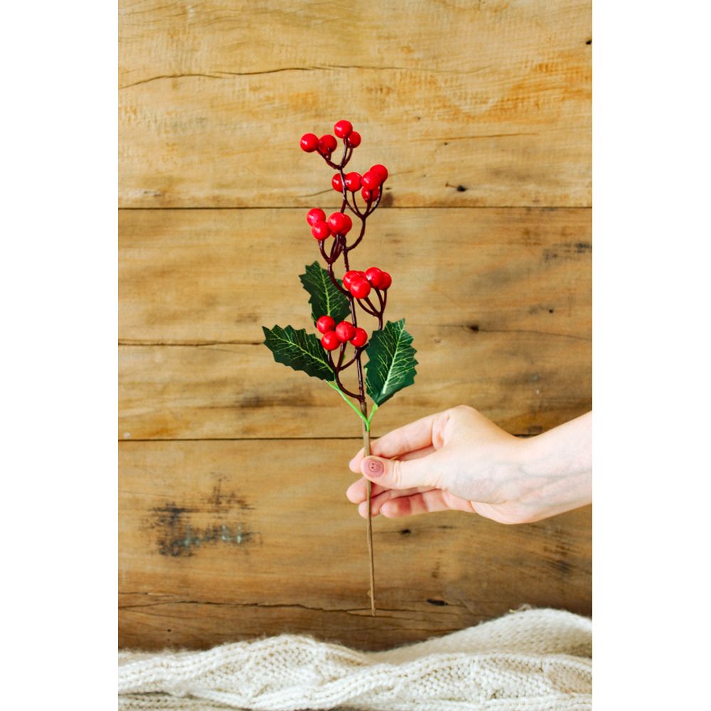 Pick decorativo feito de berries e azevinhos, lindo e versátil para decorar sua casa para o natal! Monte arranjos temáticos ou decore sua mesa posta com essa belezinha!