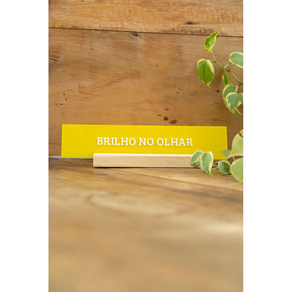 A placa acrílica brilho no olhar, é uma arte vibrante para redecorar a sua parede ou estante, o tom amarelo vibrante no fundo da peça realça a frase em letras 3d, no tom branco. A peça que faltava para abrilhantar por onde for exposta, entregando esta energia positiva e celebrando a beleza da vida.